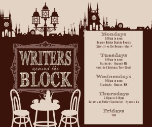 Writers (all of us) tend to make excuses when it comes to writing. The dog needs to be fed, the house needs to be cleaned, work is calling, etc. For me, the distractions at HOME were absolutely ruining my ability to write. I found that the same issue was happening to other writer friends of mine, thus we formed Writers Around The Block (WAT-B).