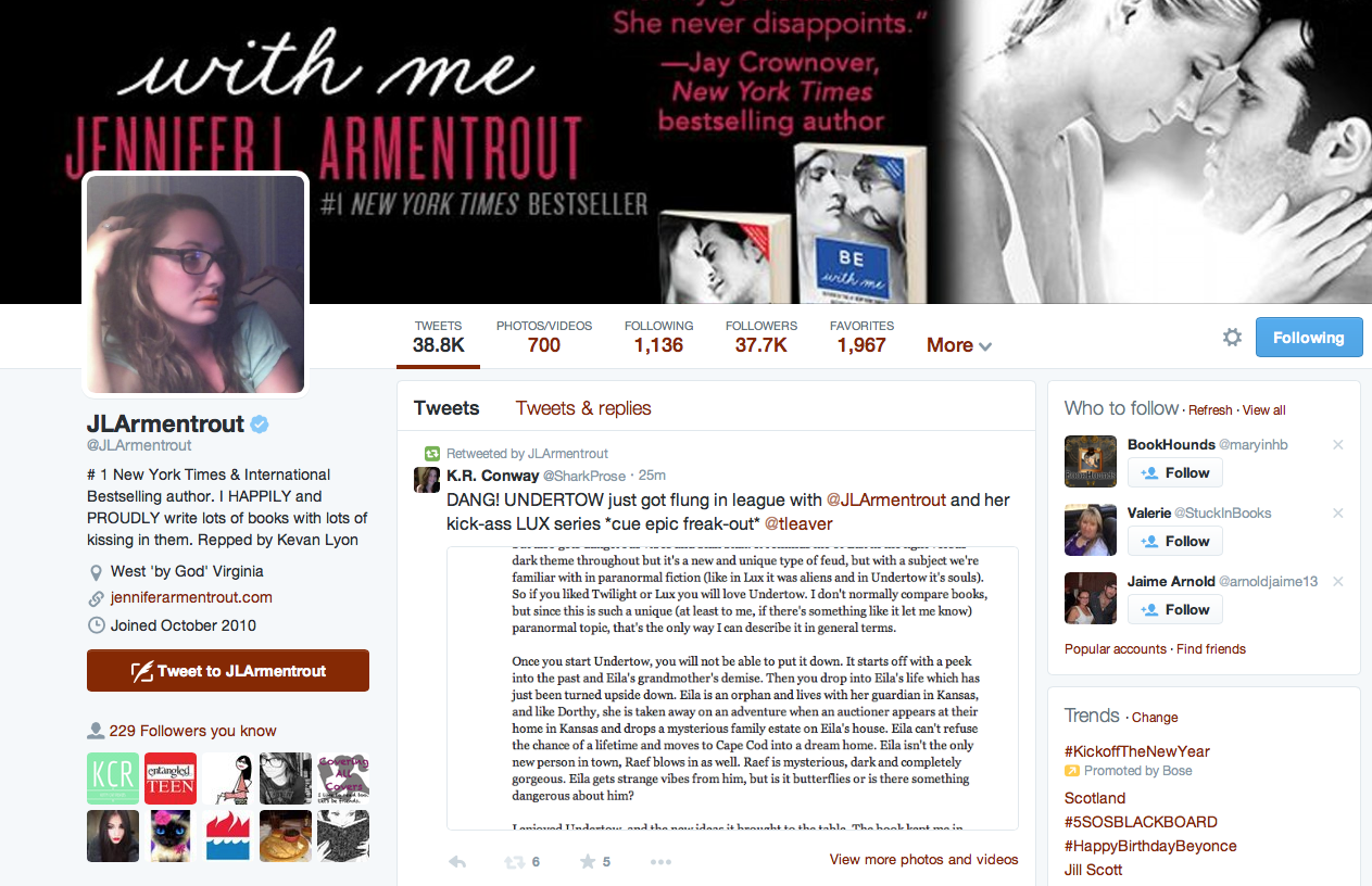 I am blessed that the UNDERTOW series gets a LOT of action. I owe that almost entirely from the one group of people who I had never really aimed for before as a journalist: fans. I started earning fabulous, dedicated fans and more importantly, they were buying Eila’s story, posting pictures to Facebook, Goodreads, and Instagram. They were talking about it, writing fan fiction on it, shooting my crazy story to the top of the Amazon bestseller heap. Teens even started recognizing me IN THE MALL, which was waaaayyyy out of the norm for me.