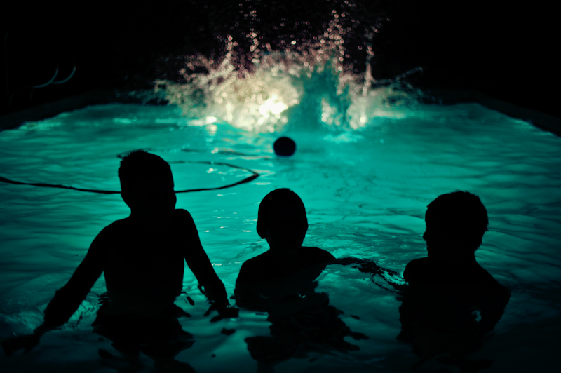 He changed into his bathing suit and returned, jumping into our pool. Now, being as it was dark outside, my father had rigged a spotlight to a nearby tree and it illuminated half the pool, but left the edged in shadow. It was favorite thing to do – night swim.
