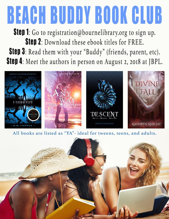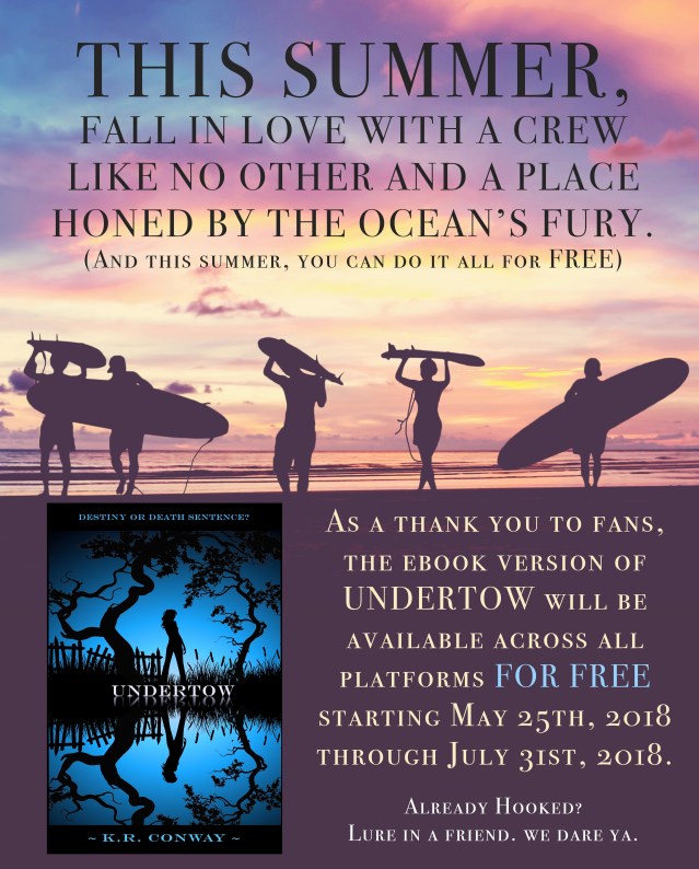 K.R. (Kate) Conway is a sarcastic bugger who likes to torment Cape Cod’s summertime tourists, taunting them about sneaky sharks and traffic-free backroads. She’s been a professional journalist since 1999 when several newspaper editors lost their minds and hired her as a feature writer. She is best known, however, for her six-book Urban Fantasy series, Undertow, which reads like a mash-up of Jaws and The Goonies. Awards, nominations, and features include Barnes and Noble’s Seven Terrifying Summer Reads for Teens (2015), Teen Ink Magazine’s Best Picks, Girl’s Life Magazine Cool Winter Reads, newspapers, magazines, and radio. Nominations include Indie Recon Live (Best New YA, Best Opening Line, Best Book Boyfriend), YALSA, Cybil, Goodreads, IRDA, and others.